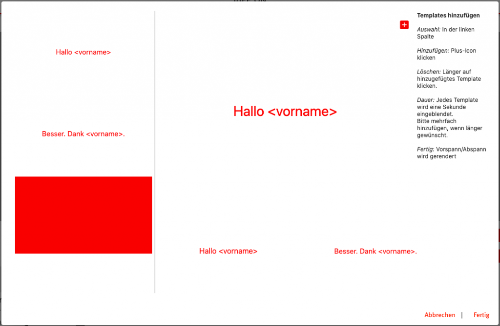 Setzt du jetzt einen Haken bei personalisiertes Video, werden automatisch die gewünschten Daten aus deiner Empfängerliste in die Vorlage eingebettet.